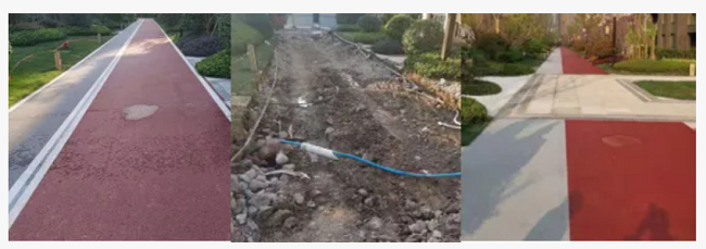 案例描述:可用于替换自行车道、园区路面等混凝土路面或沥青路面解决问题。通过与开发商对接,将内部主干道沥青路面设计更改为透气混凝土设计,增加路面渗水能力。该方案适用于老旧破损路面改造,提高小区抗涝能力。改造道路无积水,提高城市生态系统,提高园区观感。对比混凝土道路,每平米节省成本400元左右,且施工周期减短。
