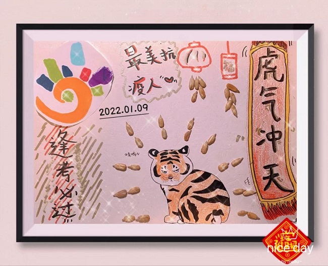 这是万科四季花园小区隔离居民创作的创意瓜子画。为了丰富隔离人员的生活,万科物业为隔离住户运送生活物资的同时,还特地组织了温馨的线上“瓜子创意大赛”,业主们用小瓜子传递出乐观和温情。