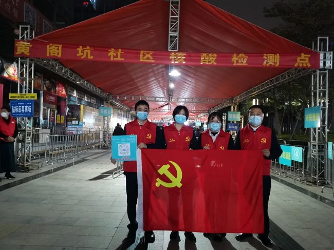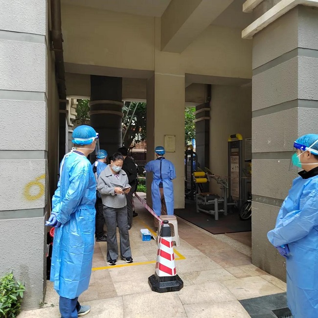 上班是物业人,下班是抗疫“战士”。绿清物业的党员先锋队利用下班时间支援社区核酸检测工作。