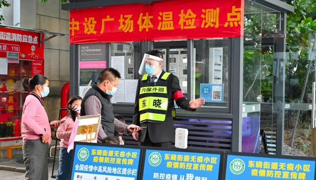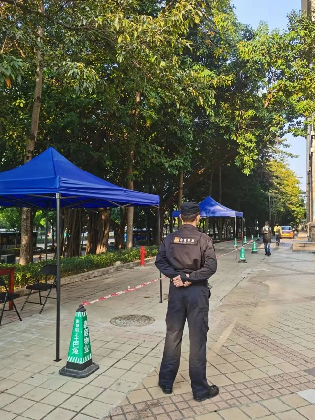面对新的一轮疫情,金地智慧服务集团深圳公司立即下达防疫通知,严格落实疫情防控工作,按社区要求启动卡口“一问二测三查验四安置”进行管控,为业主耐心解释防疫政策,加强小区出入口管理。