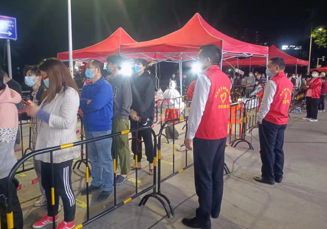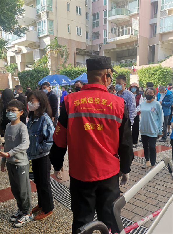 大族物业人协助配合工作人员按流程开展核酸检测工作,引导客户有序排队,全力做好新冠病毒核酸检测点现场秩序维护工作。