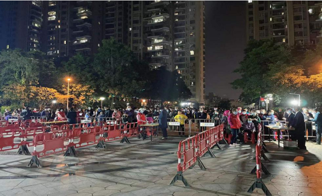 这是1月8日深夜的核酸检测现场,抱朴物业工作人员与社区工作人员、医护人员昼夜奋斗在前线,一边维持现场秩序,一边安抚排队的居民,当晚顺利完成约2600余人的核酸采样检测。