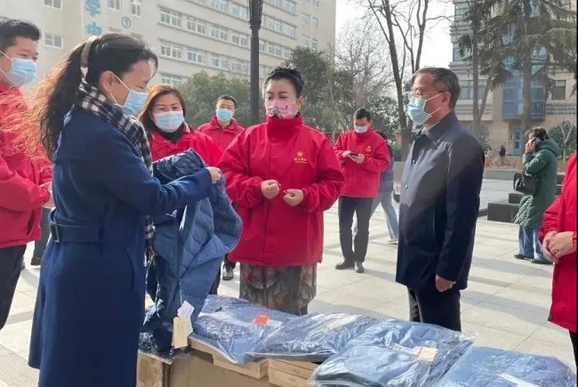 1月13日,圆方集团党委书记、总裁薛荣带领圆方物业常务副总汤平花、副总经理赵春生,医疗事业部总经理李钦营等,向河南中医药大学第一附属医院捐赠羽绒服100件,用于保障医院一线防疫人员的健康,助力郑州市疫情防控工作。捐赠仪式上,医院党委副书记、院长朱明军对圆方集团在郑州疫情防控关键时刻的大爱之举深表感谢,并表示医院会在第一时间将捐赠的防疫物资送到疫情防控的一线工作人员手中,让大家感受到圆方集团的温暖与关爱。