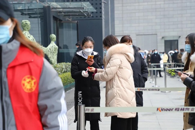 1月10日,郑州市中小学开展线上教学工作,为保障学习检测两不耽误,每日12:00---14:00期间,珠江物业各项目开辟“学生核酸检测绿色通道”,有序引导学生核酸检测,做到随到随做快捷便利,尽最大努力提供贴心服务。协助社区医护人员开展“敲门行动”,对孤寡独居老人、残障人士、重大疾病患者以及孕妇困难群众等特殊群体,通过“一测二问三看”实施关爱。