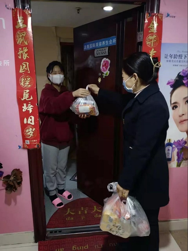 这一带本是中原的繁华地带,如今,写着“封控区出入口1”的牌子格外醒目,曾经车水马龙的街道来往的都是巡逻车、转运车,外围每隔数十米便有人员值守。封控区内人声寂寥,唯有基层的工作人员仍在奔走。1月5日随着万达商场沃尔玛1例新冠肺炎确诊病例及中原万达东院确诊病例,写字楼滞留43人检测核酸成了一个难题。万达写字楼项目经理王瑞红的电话没有中断,几经协调后,终于在7日及以后协调到一处封控区的隔离划分区域由工作人员带领绕行进行核酸检测。写字楼本不具备居住条件,一些未预料到事态严重性的被困租户已经没有生活必需品。在此期间,工作人员不仅要保障群众的日常餐饮、物资配送,还要负责生活垃圾的收运。除了要做好居民的日常生活保障服务,六合物业人也时刻留意重点关注人群的特殊需求。1月11日,包括王瑞红在内的几名六合工作人员被封控在内,但王经理表示自己并不后悔原地驻守。如果再有需要,她还会毅然选择留守。