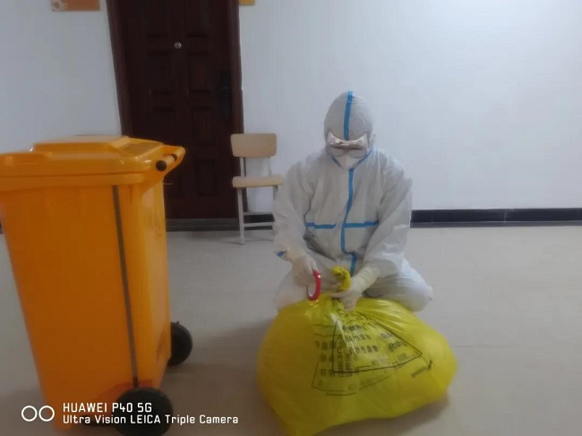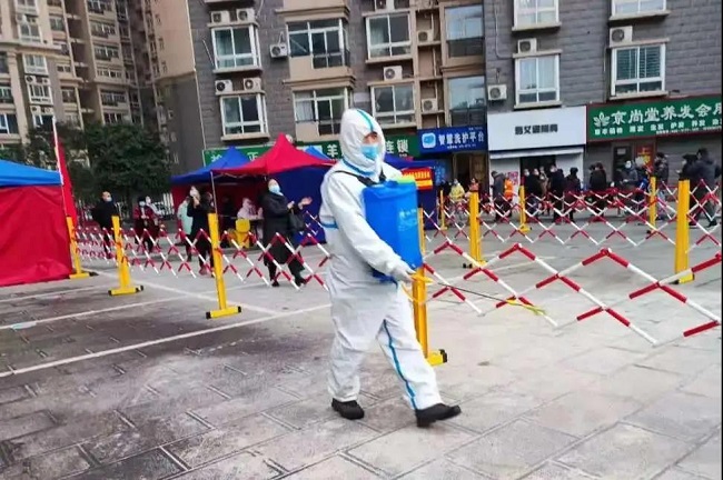 焦梅玲是鸿馨物业城市书房项目的一名图书管理员,因疫情原因书房暂时闭馆,她主动请缨支援泰丰关爱中心。贫血、低血糖的她每天穿着不透气的防护服和成人纸尿裤,负重30几斤的消杀壶,穿梭在几百间的楼栋里,一天要走上几万步,每天3次为业主运送上百件的生活物质,清理垃圾,防疫消杀。工作结束后,脱掉不透气的防护服,里面的衣服都是湿的,有的是汗水、有的是尿液,每天在隔离区不吃饭不喝水一进去就是六七个小时,焦梅玲同志任劳任怨做着重复、繁重工作,原来在大家眼中柔柔弱弱的小女人,现在也是能搬能扛的女汉子。