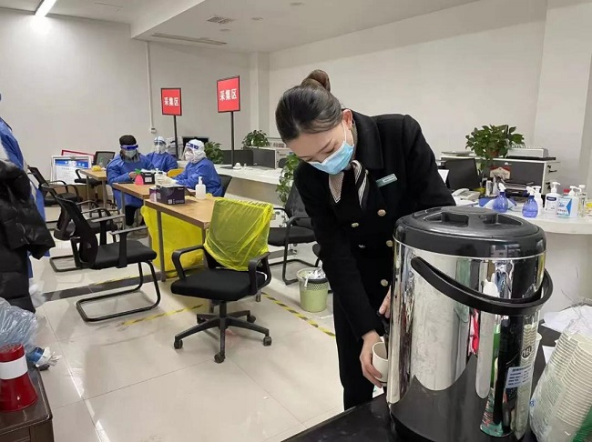 初雪还未完全消融,大雾弥漫,检测点外排了长长的队伍,人们在寒风中等待着,鸿宝物业的客服人员带着泡好的姜茶前往核酸检测点,为寒风中奋战的医护人员,现场指挥的工作人员,有序排队等待的居民们送来了一丝温暖。点滴心意,融汇暖流,用微薄之力同心战疫。