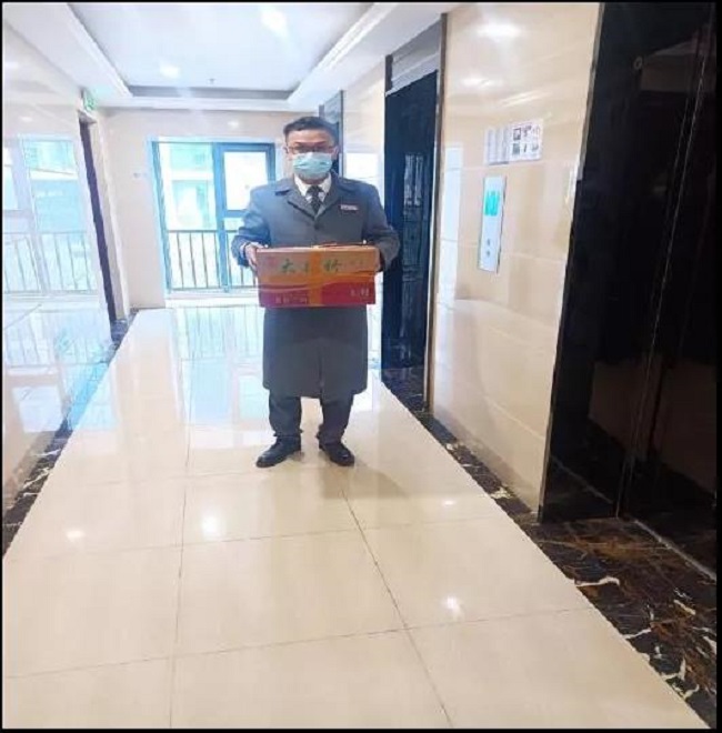 1月14日,我们所服务的小区一位被隔离的业主过生日,当得知这一情况后,我们给他订了蛋糕,并时刻关注送蛋糕的快递小哥动态,安排专人早早等在小区门口的防控卡点。蛋糕到达后,我们及时给业主送了过去,并通知业主收取,同时送上我们深深的祝福。在这疫情当前的特殊时期,被隔离人员更需要关怀和祝福。