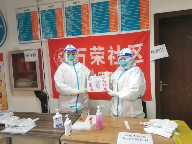 上海科瑞物业管理发展有限公司河南分公司下辖的绿地滨湖国际七区、八区项目,位于郑州市二七区地域内。项目七、八区不仅是新冠防疫工作的重中之重,也考验物业团队组织、协调、配合能力。在核酸检测的前一天晚上,接到街道办社区通知的具体时间后,管家们会在第一时间编辑预检通知及时转发业主,第二天未到上班时间,两组物业服务人员早早到岗,一组布置核酸检测的现场,配合医护人员和社区志愿者组织业主排队、参加检测,另一组从6点30分开始,全身穿戴好防护服,与医生一起入户采集隔离业主的核酸,成为医护人员、社区与业主之间的良好纽带。