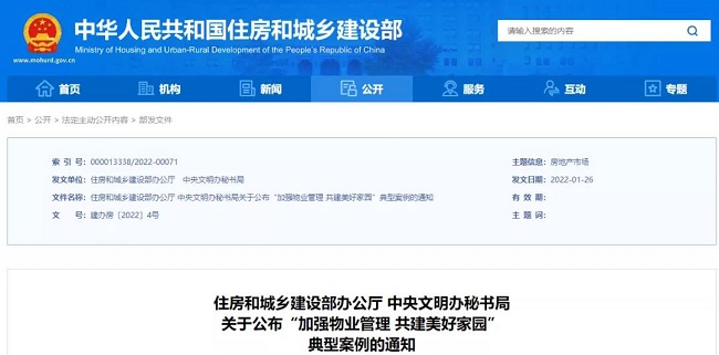 住房和城乡建设部 中央文明办公布100个“加强物业管理 共建美好家园”典型案例