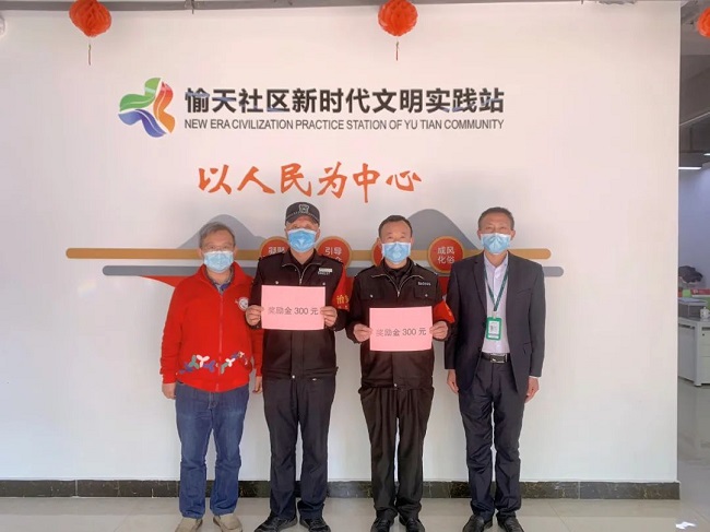 罗湖区翠竹街道愉天社区合正星园物业服务中心楼宇管理员郭志强、曹余良分别于2月10日、2月15日发现大数据未排查到的黄码人员,及时上报社区工作站,为防疫工作做出贡献。翠竹街道应急管理部于2月23日为两人颁发奖励金,社区领导对合正星园物业服务中心的疫情防控给予高度认可。在这场没有硝烟的战役中,合正物业严格执行政府下达的防疫政策,对来访人员认真测温登记,细心查验“健康码”、“行程码”,发现黄码、红码及时反映给社区;贴心设立置物架,用心消毒,为业主生活提供便利……这份荣誉属于每一位防疫前线的物业人,合正物业也将继续发光发热,为防疫工作贡献力量。守护我们的家园,是我们义不容辞的使命。