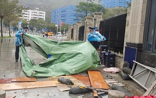 在深圳连续下雨没停过,最冷的那些天,位于深圳市宝安区西乡街道固戍社区的海滨新村小区的物业工作人员始终坚守在岗位上。即使面对着接二连三的困难考验——天气恶劣,风雨交加,气温剧降,出入口唯一一个能够挡雨的大伞被风雨吹破了,自己的小伞也破了,遇到不配合防疫工作检查的车辆,司机直接撞上物业工作人员,工作中受伤,在岗的所有物业工作人员都没有离开岗位,伞破了来不及再找挡雨的工具那就冒雨检查,遇到不配合亮码测温的,即使撞上来也不放行,受伤了也不离开,坚守在岗。深圳市海滨新村物业管理有限公司的物业工作人员面对这场无硝烟的抗疫,展示出物业工作者面对困难不怕苦不怕累,超强责任心的物业人精神!