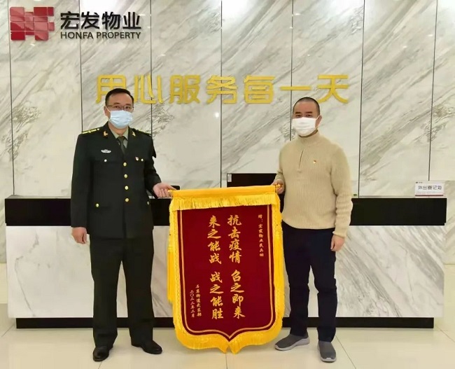 ►宏发物业:抗击疫情受称赞,街道武装部赠送锦旗