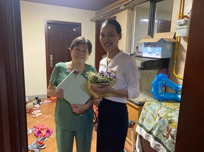 在新冠疫情发生后,沈若男作为镏金岁月客服主管,积极协助社区进行登记排查,带领团队配合社区上门做全面摸排工作,一户一户的走访落实。为了能让业主们乐起来,她策划开展“元宵节线上灯谜大赛”、“防疫共勉我宅家我运动我健康”等主题活动,让业主宅在家里也能过得丰富多彩,有滋有味。2021年,她主动加入五福桥社区志愿队,积极参加社区疫情防控工作,与社区一起走访排查、疫情检查、发放物资。