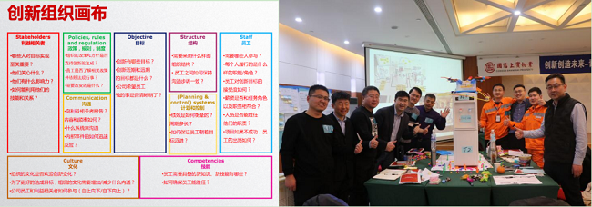 具体实施路径如下:引进外部专家,在公司骨干内进行普及创新组织画布工具;由公司内部引导师在内部尝试引进该工具;在公司范围内,将公司的核心价值观“求实、匠心、创新、聚合”中的创新进行全面宣贯落地;将创新工具进行推广,让核心骨干员工重新认识创新,并能够认同落地;让创新与实际工作紧密结合。