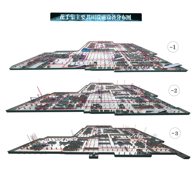 解决问题:直观的将主要共用设施设备展示出来,让新员工尽快熟悉地下室地形和环境,让老员工能在应急处理时第一时间找到设备控制区域。