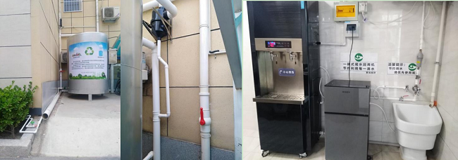 案例描述:为提高水资源的利用率,建设节水型机关,公司项目从雨水和尾水回收利用两个方面进行改进。雨水回收:在院内安装了1个容积为3m3的雨水收集罐,雨水从其过滤单元流入储水罐中,再经自吸泵增压后接入到绿化喷淋管道中,采用喷灌的方式用于绿化灌溉。尾水回收:办公楼每层的净水开水器在使用过程中会产生大量尾水,每台开水器日回收水量约100L,每天可回收近1000L尾水,用于涮洗墩布和抹布。