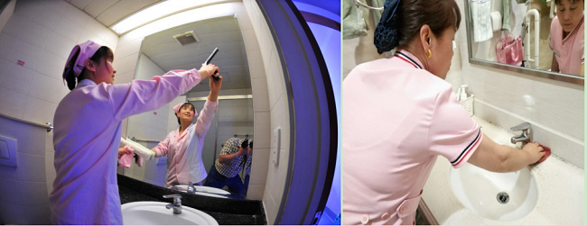 案例描述:医院卫生间使用人群特殊且人流量大,易滋生蚊蝇细菌,对保洁工作带来了极大挑战。物业服务企业可通过硬件和软件的改善来提升卫生间环境,如:向院方建言,完善卫生间硬件设备、设施;张贴规范化的“温馨提示”;安装定时喷香器;安装儿童护理台和儿童安全座椅;增加绿植摆放点;依实际情况调整保洁频次;增设卫生间专职管理人员。通过适度的人力和资金投入,实现了卫生间宽敞明亮,设备设施齐全,地面干净、空气清新的服务目标,得到了院方及医患的广为赞誉。