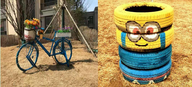 案例描述:通过废弃物品改造计划,一方面针对日常工作发现的废弃物品如车胎、破旧自行车、报纸等等废弃物品进行改造后的再利用,在减少园区内废弃物品的同时,改造后的作品作为园区内小品类的租摆,还能提升园区的品质。另一方面通过废弃物品改造计划,能够树立节约再利用的价值观,通过物业服务的对客宣传,使园区内的业主都能够提升此方面的意识,同时起到良好的社会宣传效果。