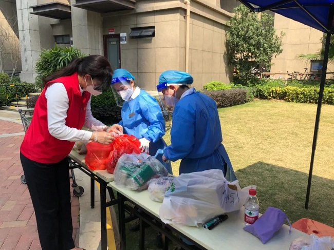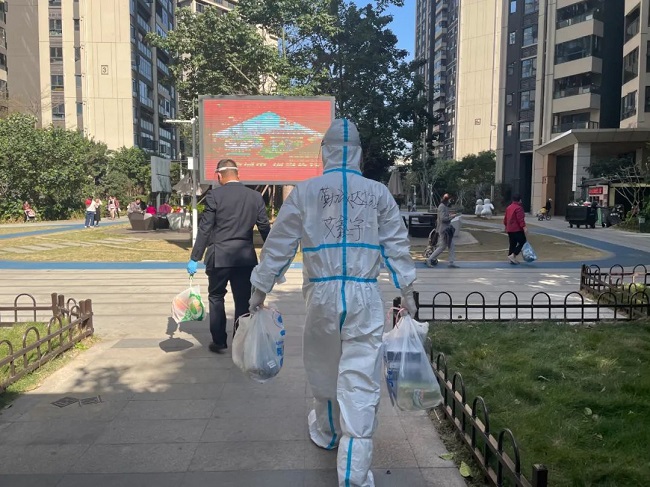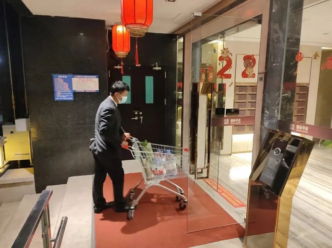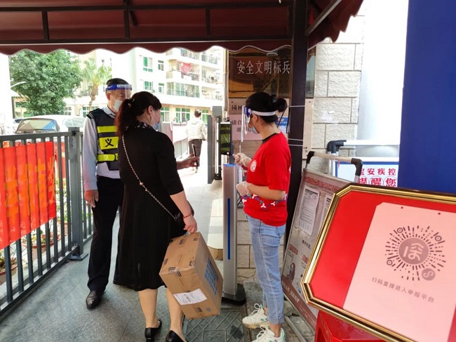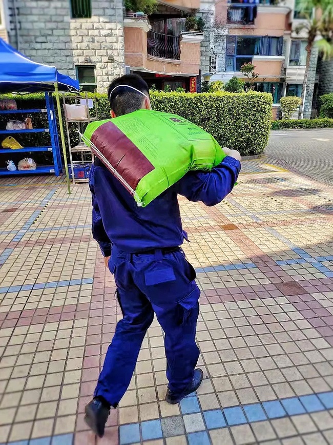 为避免外来快递、外卖堆积,融创服务集团华南大区管家在疫情期提供配送快递、外卖上门服务。▲