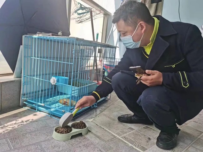 万科金域蓝湾的管家海芋,真名邓剑,他在这里工作17年了,他说小区已经成为他的第二个家,疫情的突然来袭,业主们不能及时赶回来,家里的“小宝贝们”也成了他的服务对象,添猫粮、遛狗狗成为了日常工作,宠物的主人说:“每天接到管家的视频来电,看到家里的小猫小狗被照顾得很好,真的宽心不少”。▲