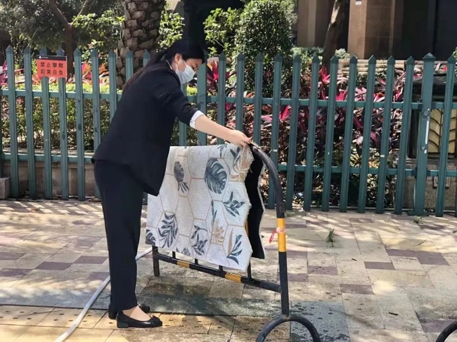 面对这场没有硝烟的战场,盛世嘉物业燕罗街道办的保洁员们毅然决然地从家里的舒适区搬到了大院内居住。因不能堂食,每日的垃圾清运难度也大大提高,保洁员们全力做好卫生保障工作,助力抗疫。▲