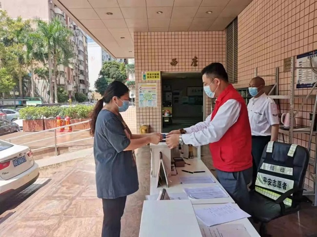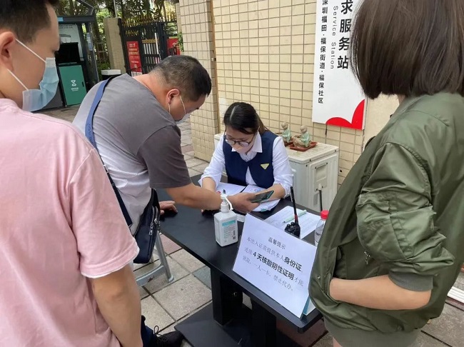 为严格落实政府对小区封闭管理的要求,加强疫情期间进出人员管控,14日上午,赛格物业在管的小区物业人员为业主办理出入证。▲