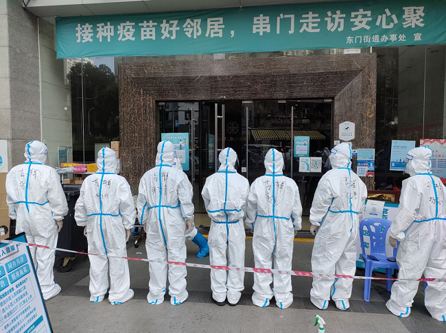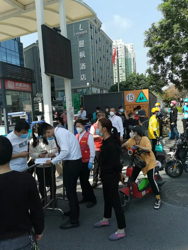 深圳这座有爱有温度的城市一时间被按下了“暂停键”,龙城服务集团人力资源部员工走出办公室,第一时间奔赴“战场”,成为峰景社区核酸检测现场志愿者团队一员。▲