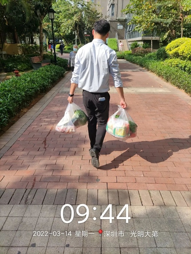 自深圳疫情防控升级以后,阳光智博服务广东区域深圳物业公司深南阳光大厦项目为保障居家隔离业户生活不受影响,项目多名员工主动请缨,担当专属“配送员”重任,为居家隔离业户取外卖、生活用品等。▲