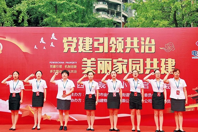 2018年,物业服务企业党总支率先在西岸观邸小区启动“党建引领共治,美好家园共建”工作,通过企地共建、党建联盟,成立院落党总支,下设三个党支部:第一、二党支部由业主党员组成,第三党支部由6名物业服务企业员工党员组成。小区于2019年换届成立第二届业主委员会,为小区治理提供了强有力的组织保障。