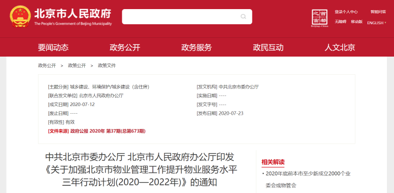 《关于加强北京市物业管理工作提升物业服务水平三年行动计划(2020—2022年)》的通知