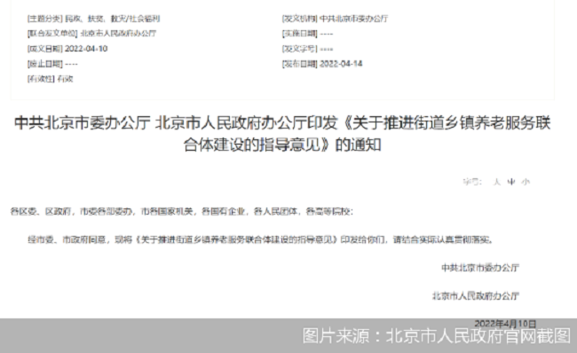 中共北京市委办公厅 北京市人民政府办公厅印发《关于推进街道乡镇养老服务联合体建设的指导意见》的通知
