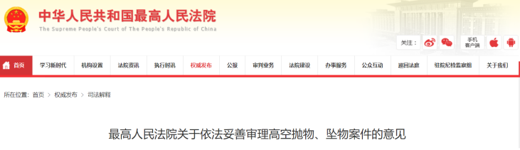 最高人民法院关于依法妥善审理高空抛物、坠物案件的意见
