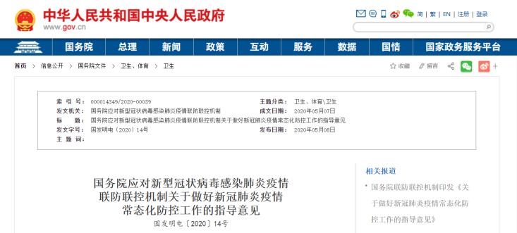 国务院应对新型冠状病毒感染肺炎疫情联防联控机制关于做好新冠肺炎疫情常态化防控工作的指导意见