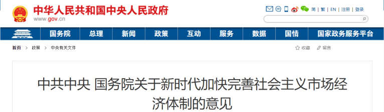 中共中央 国务院关于新时代加快完善社会主义市场经济体制的意见