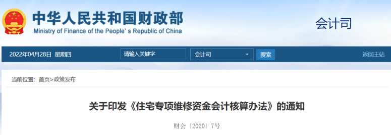 为了规范住宅专项维修资金的会计核算,保证会计信息质量,根据《中华人民共和国会计法》、《物业管理条例》、《住宅专项维修资金管理办法》等法律法规,我们制定了《住宅专项维修资金会计核算办法》(以下简称《办法》),现予印发,自2021年1月1日起施行。