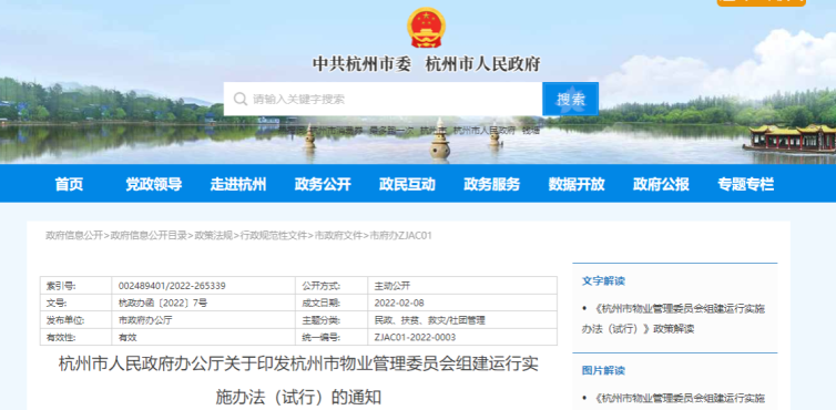 杭州市人民政府办公厅关于印发杭州市物业管理委员会组建运行实施办法(试行)的通知
