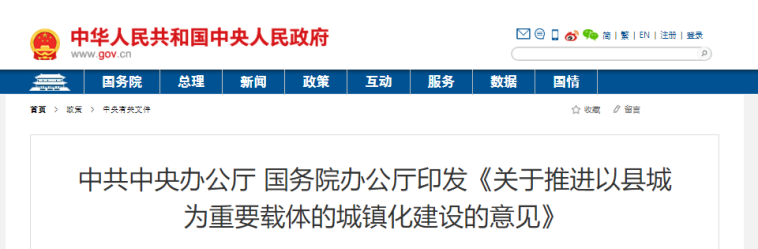 中共中央办公厅 国务院办公厅印发《关于推进以县城为重要载体的城镇化建设的意见》