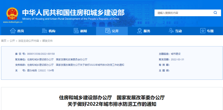 住房和城乡建设部办公厅 国家发展改革委办公厅关于做好2022年城市排水防涝工作的通知