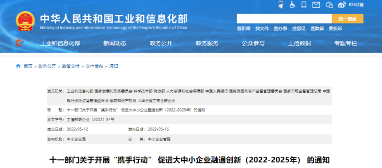关于开展“携手行动” 促进大中小企业融通创新(2022-2025年) 的通知