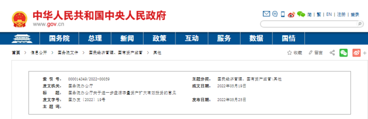 国务院办公厅关于进一步盘活存量资产扩大有效投资的意见