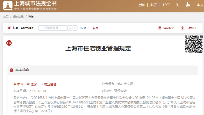 根据2018年11月22日上海市第十五届人民代表大会常务委员会第七次会议《关于修改〈上海市住宅物业管理规定〉的决定》修正