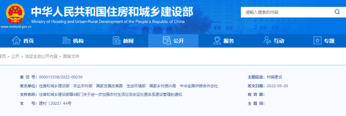 住房和城乡建设部等6部门关于进一步加强农村生活垃圾收运处置体系建设管理的通知