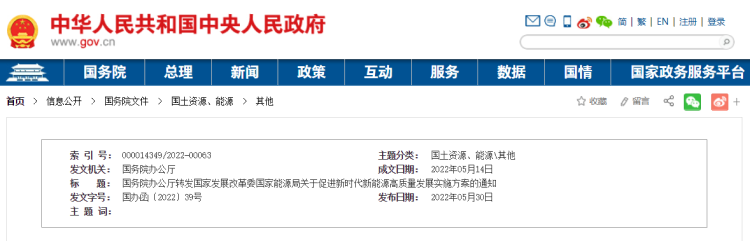 国家发展改革委、国家能源局《关于促进新时代新能源高质量发展的实施方案》已经国务院同意,现转发给你们,请认真贯彻落实。