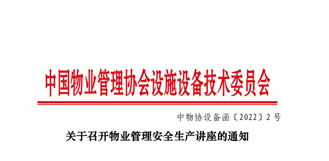(中物协设备函【2022】2号)关于召开物业管理安全生产讲座的通知