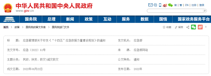 应急管理部关于印发《“十四五”应急救援力量建设规划》的通知