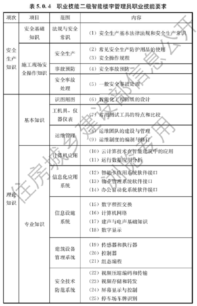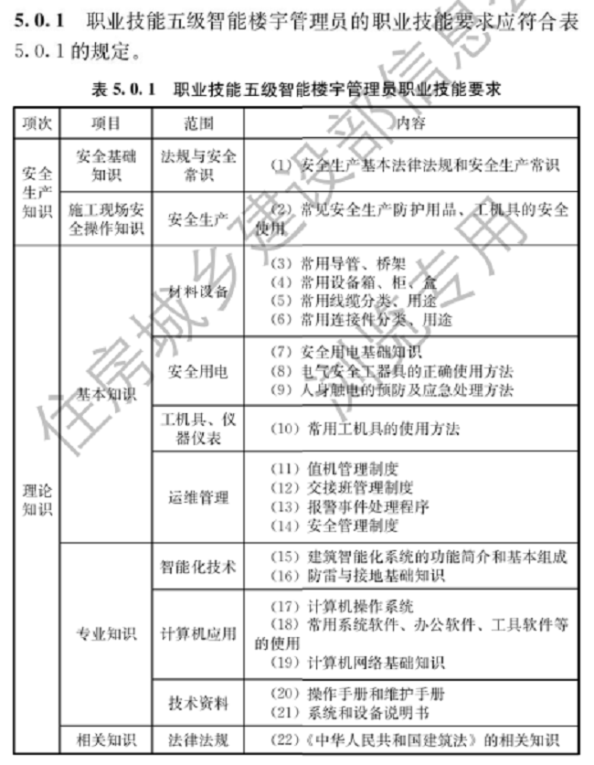 据住房和城乡建设部官网7月5日消息,住房和城乡建设部批准发布行业标准《智能楼宇管理员职业技能标准》,编号为JGJ/T493-2022,自2022年8月1日起实施。