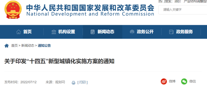 《“十四五”新型城镇化实施方案》已经国务院批复同意(国函〔2022〕52号)。现印发给你们,请结合实际认真贯彻落实。