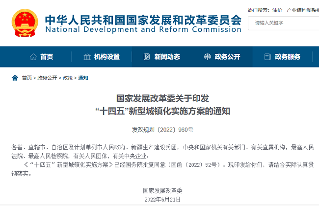 7月12日,国家发改委网站发布《“十四五”新型城镇化实施方案》。