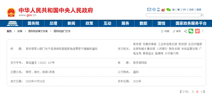 商务部等13部门关于促进绿色智能家电消费若干措施的通知